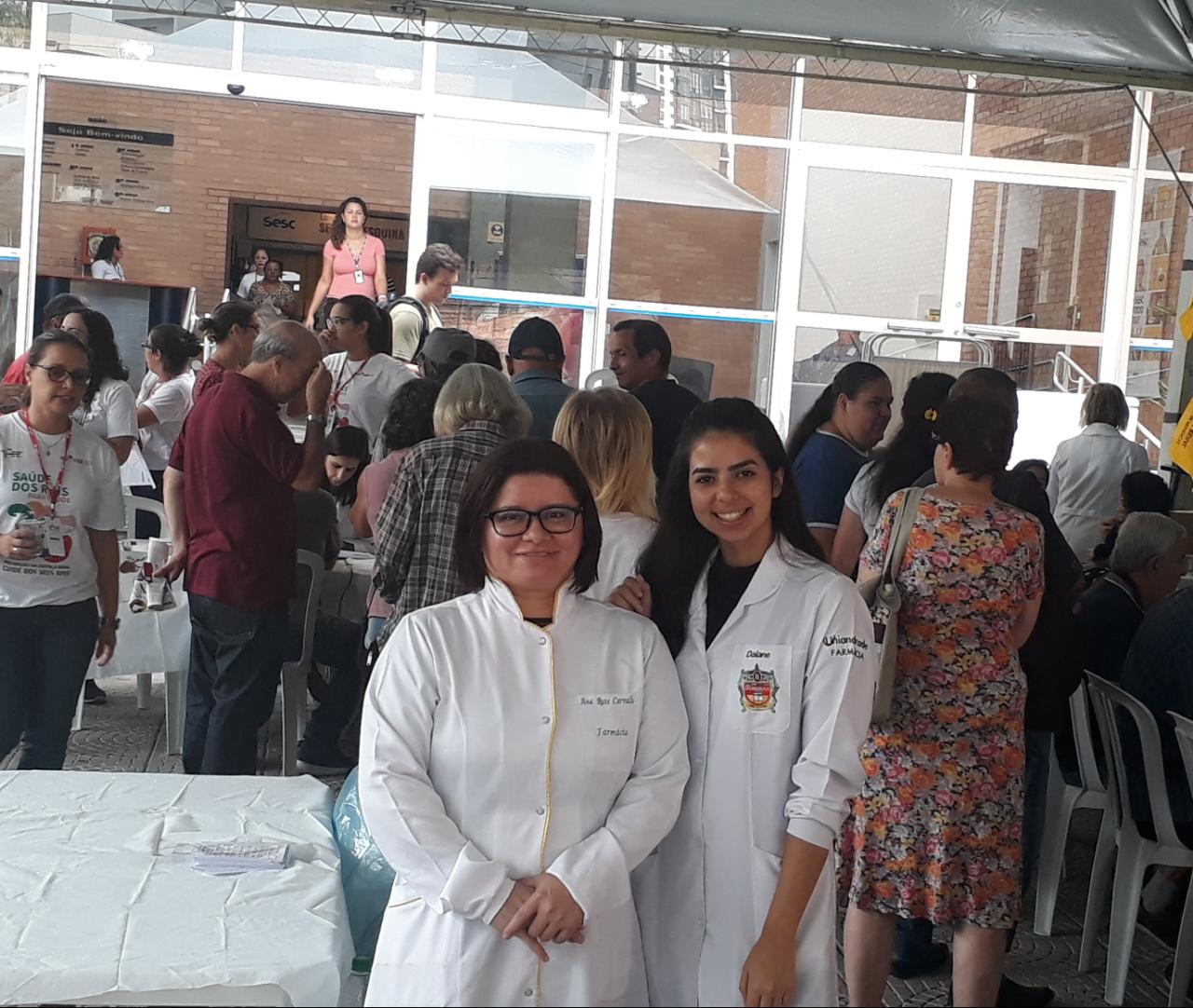 Mas as belas ações não ficaram apenas nesse dia. Na sexta-feira, 15 de março, em comemoração ao Dia Mundial do Rim, o Curso de Farmácia esteve no Sesc da Esquina atendendo à população, junto com alunos do Curso de Enfermagem e outros parceiros.