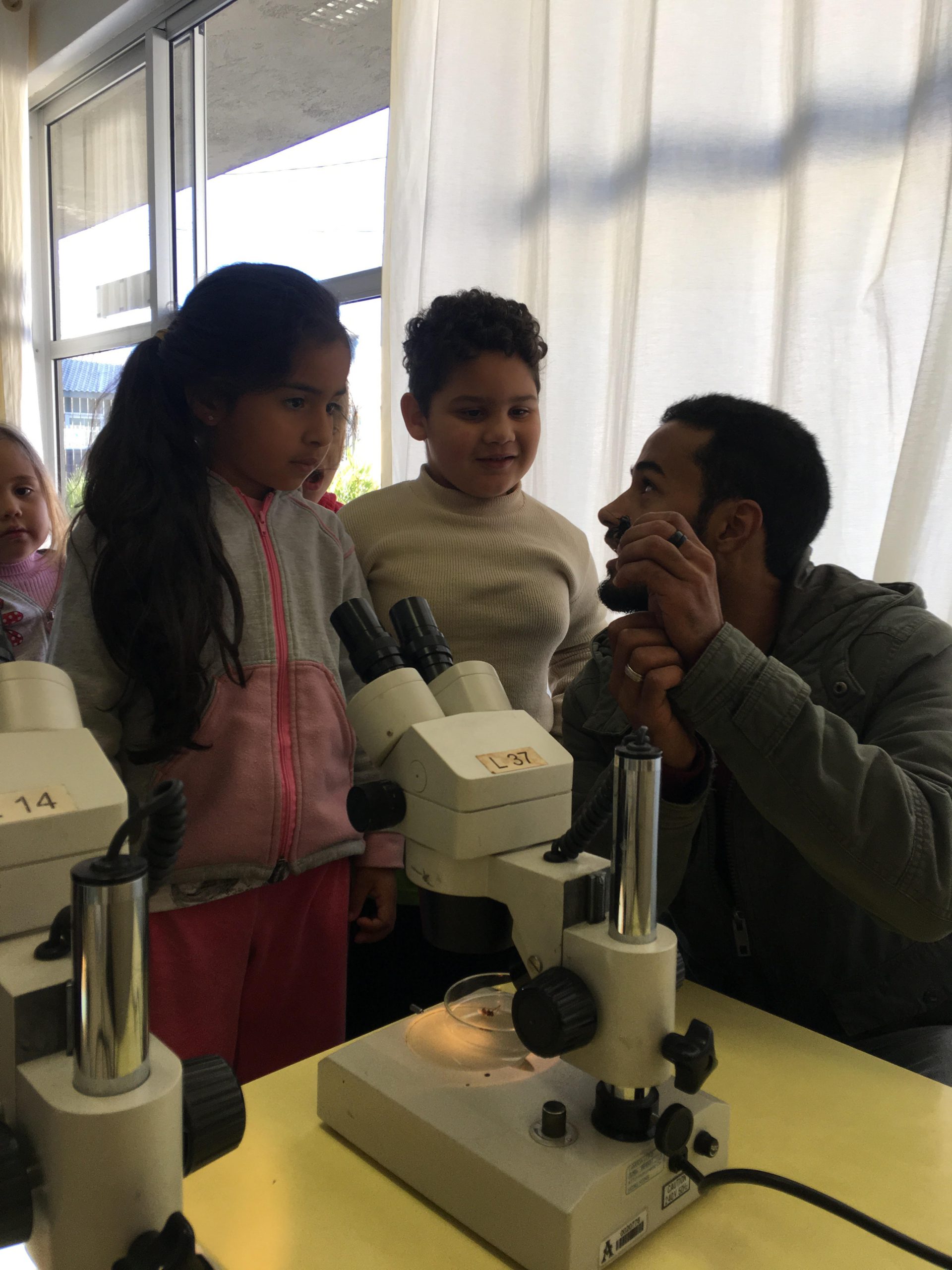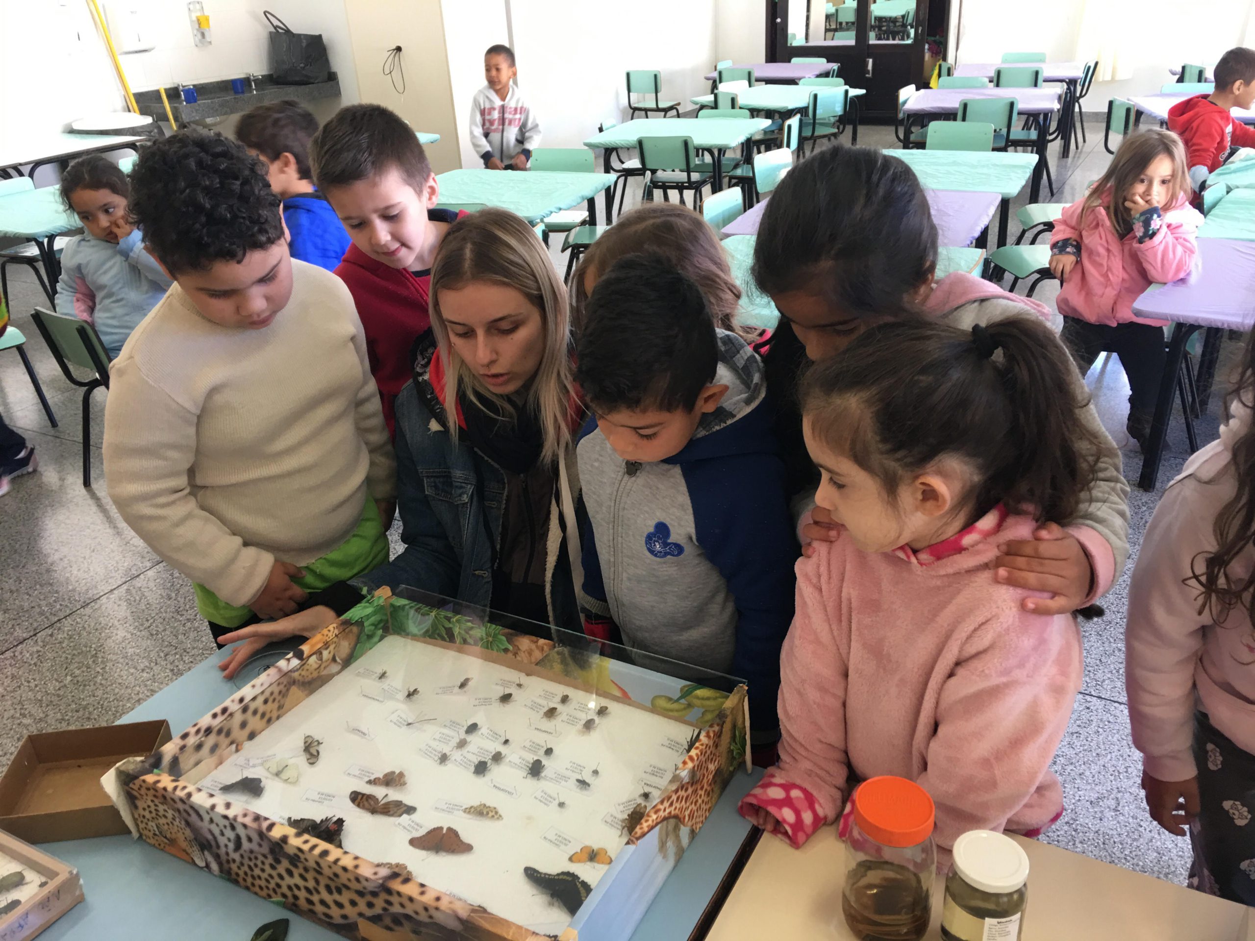 O projeto foi aplicado para duas turmas do Pré II. A história sobre como ocorre a polinização foi contada de forma lúdica, sendo apresentada com materiais elaborados pelos próprios alunos de Biologia durante seus projetos integradores. Na oportunidade, as crianças puderam observar animais responsáveis pela polinização na lupa eletrônica, para conhecer as estruturas que auxiliam na polinização, e as partes dos insetos.