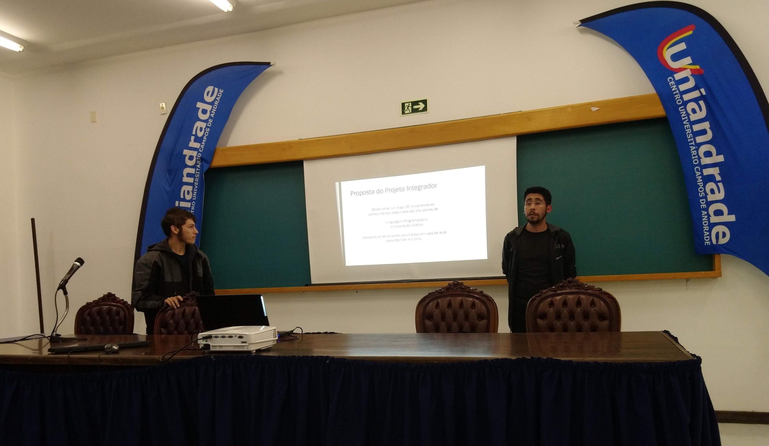 Por fim, os alunos do 6º e 7º período do Curso de Ciência da Computação tiveram como requisito do Projeto Integrador desenvolver um jogo em terceira pessoa, baseado numa história intergaláctica, na qual o personagem principal do jogo deveria explorar um mundo e fugir dos alienígenas.