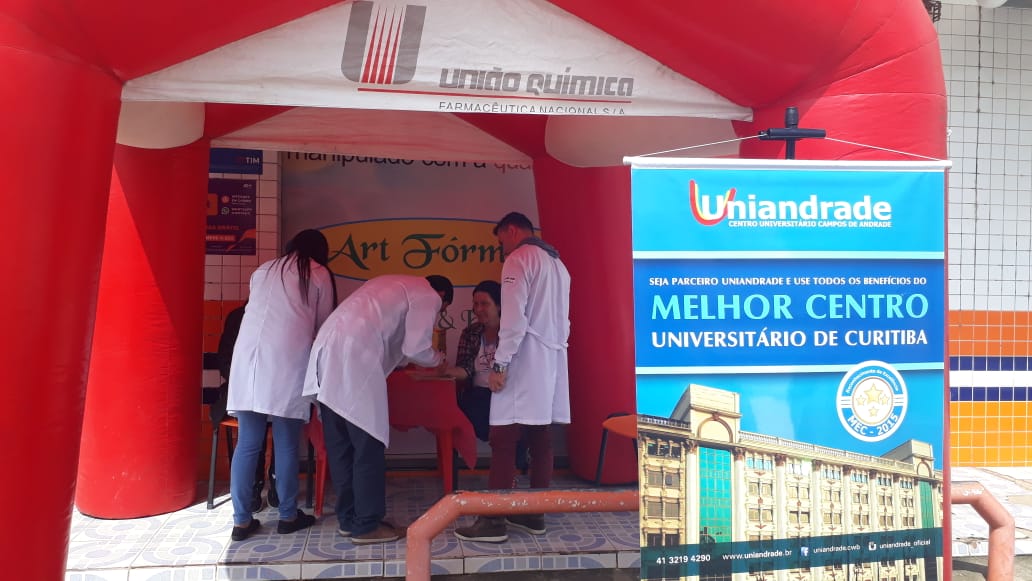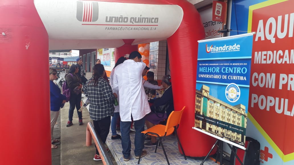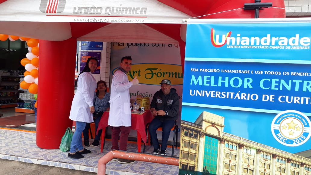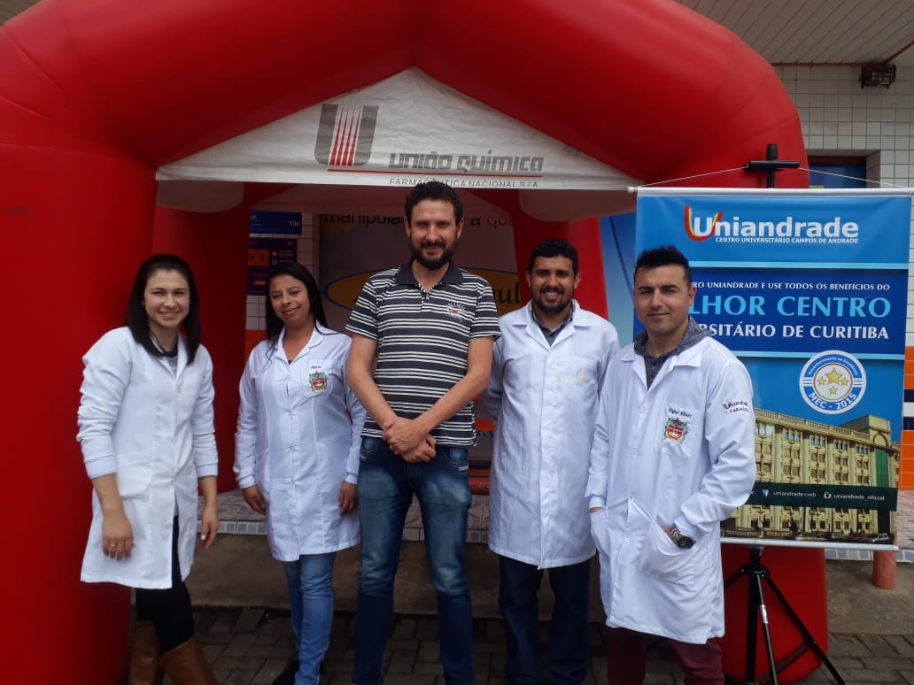 No sábado, dia 15 de setembro, das 9h às 15h ,os alunos da Uniandrade do curso de Farmácia fizeram uma ação comunitária de saúde no bairro Jardim Graziela, em Almirante Tamandaré – Região Metropolitana de Curitiba, em parceria com a farmácia Uniandrade e com a farmácia Graziela.